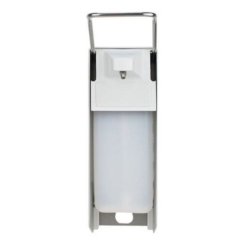 Der Desinfektionsmittel-Spender eignet sich zur Montage an Wänden oder Desinfektionssäulen. Die Dosierung des Desinfektionsmittels können Sie hygienisch mit dem Ellenbogen oder dem Unterarm vornehmen.