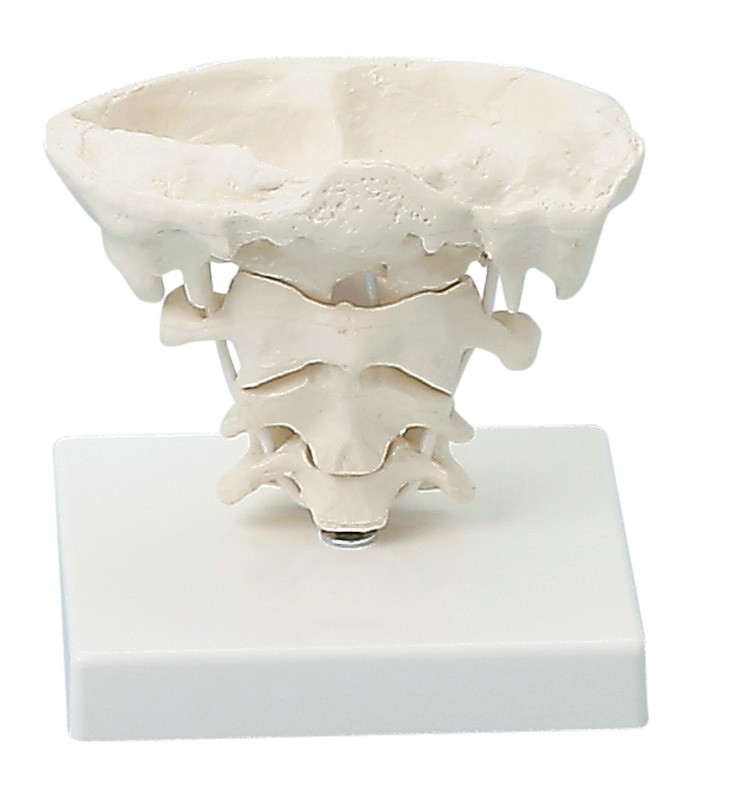 Dieses Modell besteht aus Halswirbel C3, Axis (Dreher) C2, Atlas C1 und einem Segment des Hinterhauptbeins. Mit diesem Modell können die Bewegungen im oberen Halswirbelbereich naturgetreu und anatomisch richtig nachvollzogen werden. Alle Bewegungsmöglichkeiten im Atlanto-occipital und Atlanto-axialgelenk sind nachweisbar.