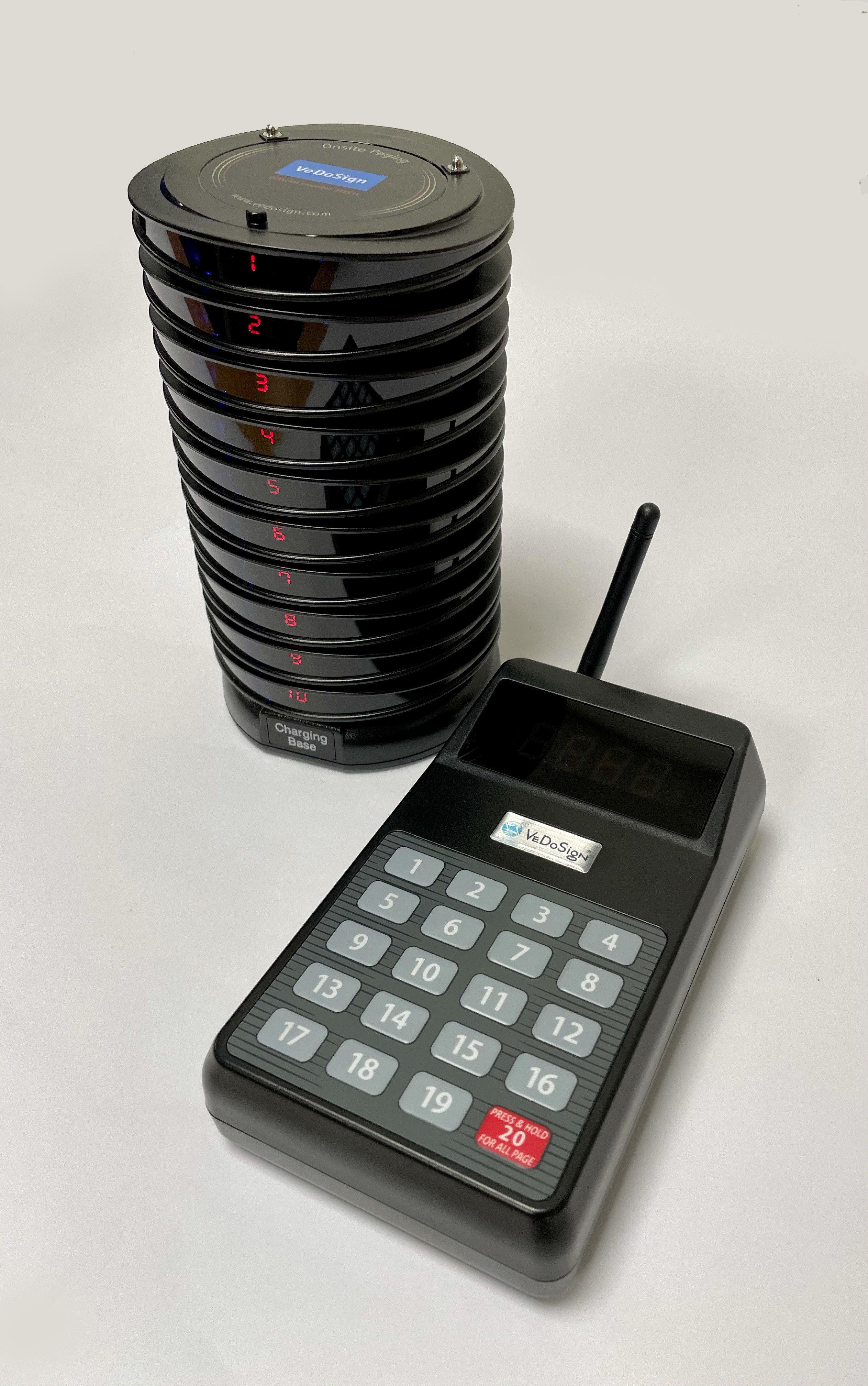10er-Patienten-Rufsystem-Set: Dieses Set enthält einen Sender, Ladegerät und 10 Pager
