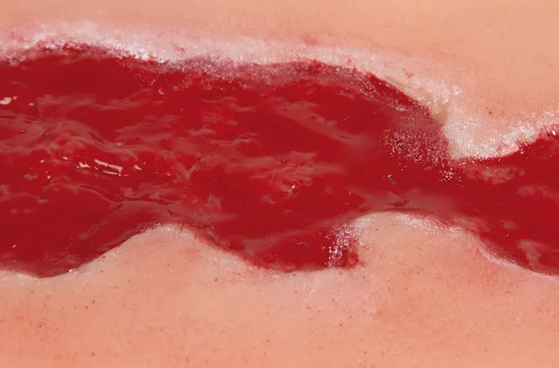 Anschauliches anatomisches Modell eines Ulcus Cruris Venosum in der Granulationsphase